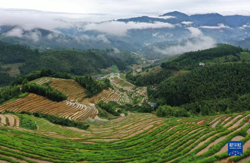 這是江西省贛州市崇義縣上堡梯田(2022年6月16日攝,無人機(jī)照片)。新華社記者 萬象 攝