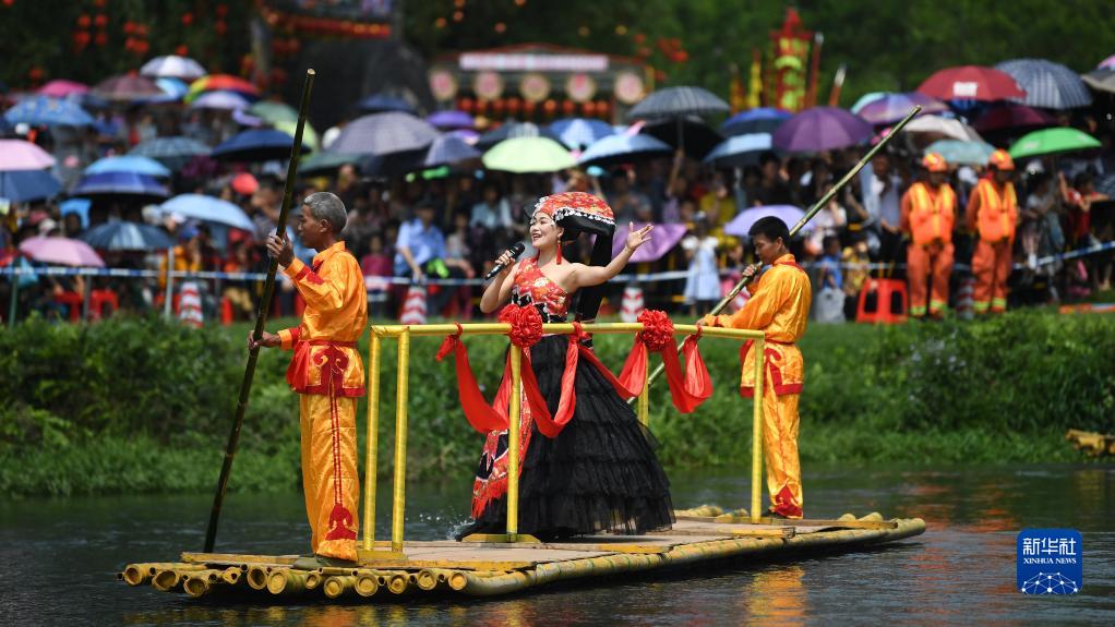 廣西欽州市的一名歌手在歡慶“三月三”活動(dòng)中演唱壯族傳統(tǒng)民歌(2019年4月7日攝)。新華社記者 張愛林 攝