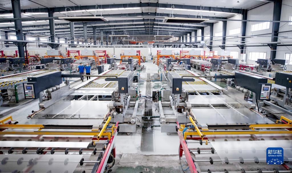 這是位于寧夏石嘴山市的寧夏金晶科技有限公司的光伏玻璃深加工生產(chǎn)線(2022年6月1日攝)。新華社記者 楊植森 攝