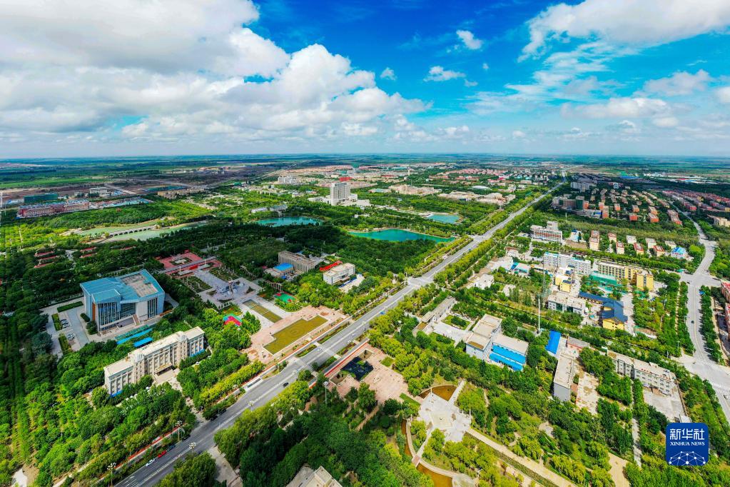 這是2021年7月22日拍攝的新疆生產(chǎn)建設(shè)兵團(tuán)第三師圖木舒克市(無(wú)人機(jī)照片)。新華社發(fā)(王俊龍 攝)