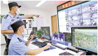 在南京市公安局高淳分局淳溪派出所綜合指揮室,民警通過一體化作戰(zhàn)平臺(tái)現(xiàn)場(chǎng)調(diào)度指揮社會(huì)面突發(fā)案事件處置。 本報(bào)通訊員 劉蕓 攝