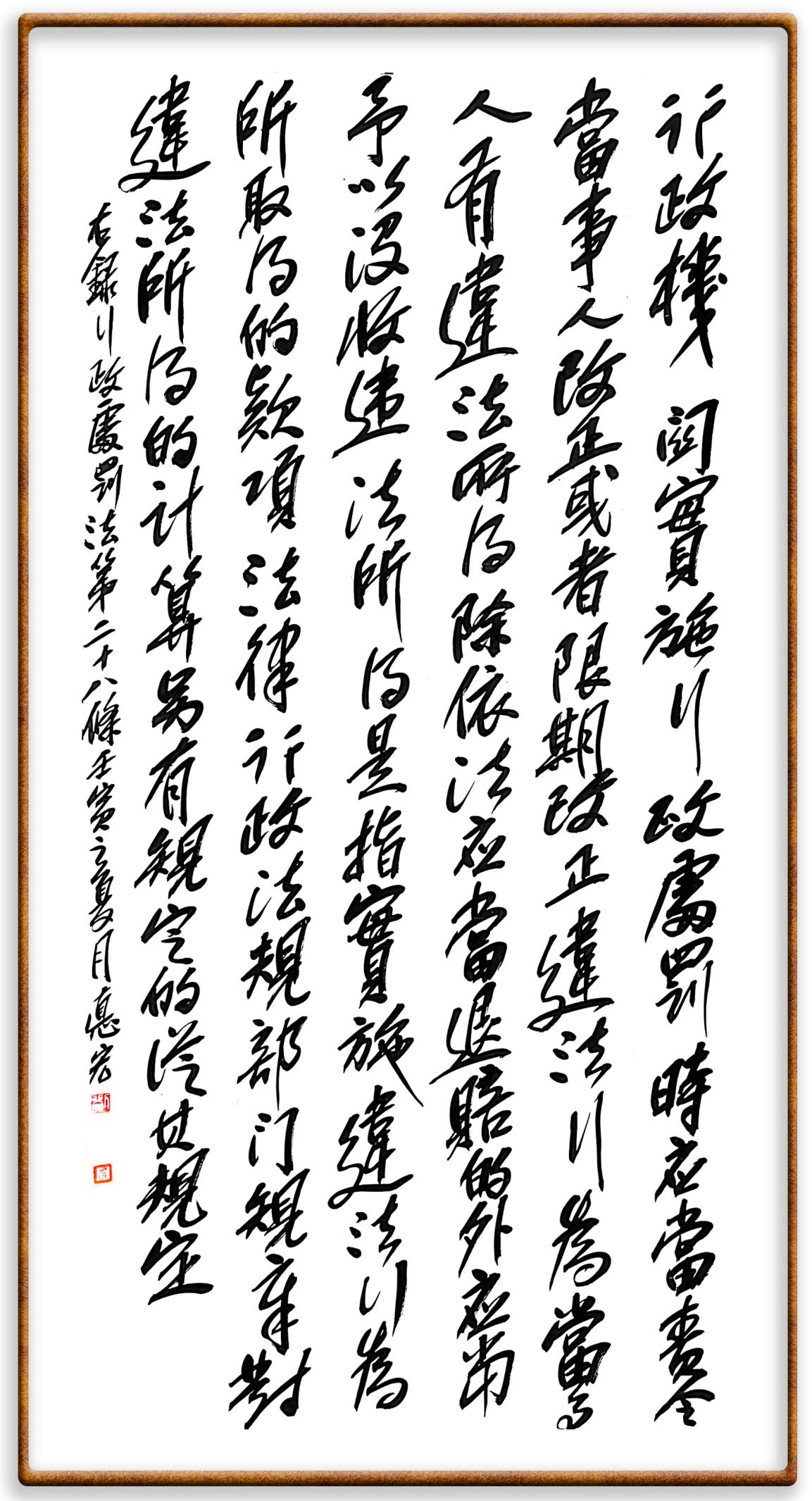 繼《中華人民共和國民法典》《中華人民共和國土地管理法》《中華人民共和國土地管理法實(shí)施條例》《中華人民共和國法律援助法》之后,法治日?qǐng)?bào)社聯(lián)合北京市司法局、北京市書法家協(xié)會(huì),將筆端對(duì)準(zhǔn)《中華人民共和國憲法》和《中華人民共和國行政處罰法》。