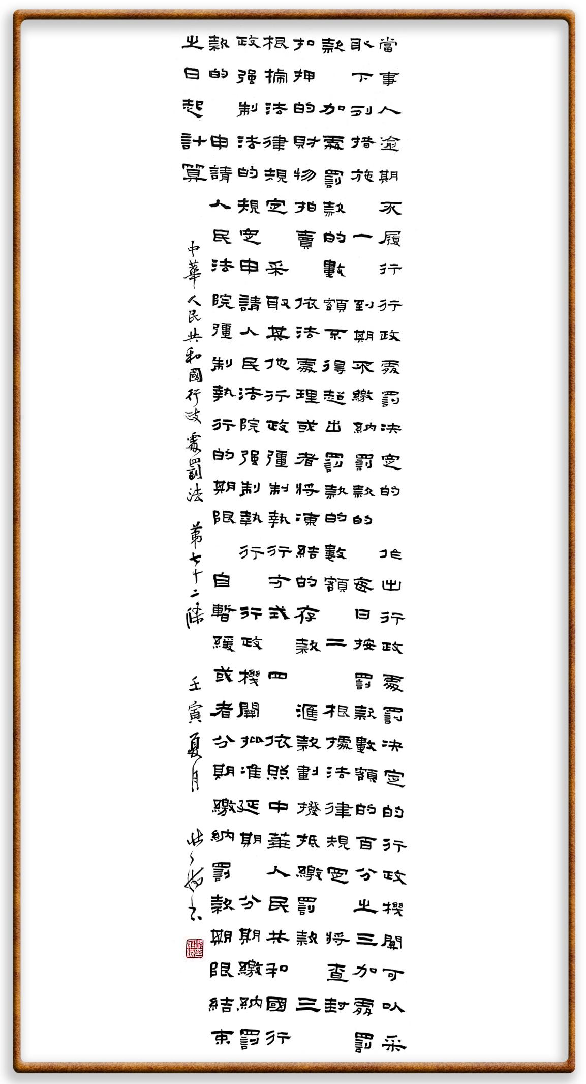 繼《中華人民共和國民法典》《中華人民共和國土地管理法》《中華人民共和國土地管理法實施條例》《中華人民共和國法律援助法》之后,法治日報社聯(lián)合北京市司法局、北京書法家協(xié)會,將筆端對準(zhǔn)《中華人民共和國憲法》和《中華人民共和國行政處罰法》。