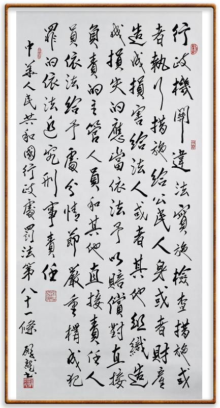 繼《中華人民共和國(guó)民法典》《中華人民共和國(guó)土地管理法》《中華人民共和國(guó)土地管理法實(shí)施條例》《中華人民共和國(guó)法律援助法》之后,法治日?qǐng)?bào)社聯(lián)合北京市司法局、北京書(shū)法家協(xié)會(huì),將筆端對(duì)準(zhǔn)《中華人民共和國(guó)憲法》和《中華人民共和國(guó)行政處罰法》。