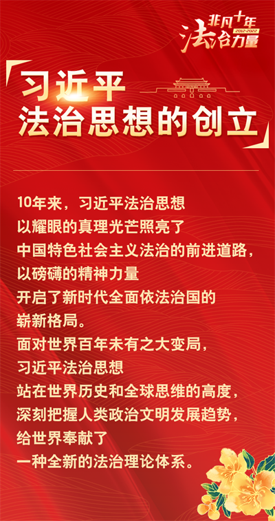 法治網(wǎng)精心策劃制作十期海報,帶您一起領略非凡十年的法治力量!今天為您奉上第一期“習近平法治思想的創(chuàng)立”。