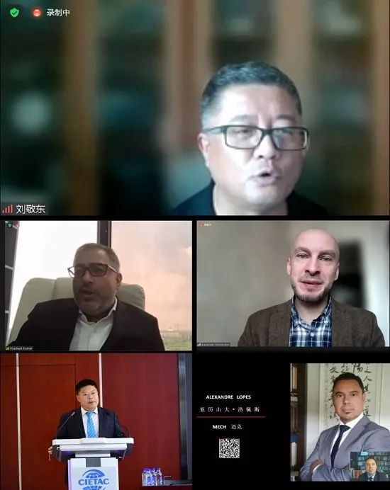 (從左至右、從上至下依次為主持人中國WTO法學(xué)會副會長,中國社會科學(xué)院國際經(jīng)濟(jì)法室主任劉敬東教授,發(fā)言嘉賓印度Trinaya律師事務(wù)所合伙人、印度律師協(xié)會主席Prashant Kumar先生、俄羅斯莫斯科國立大學(xué)法學(xué)院的 Alexander E.Molotnikov副教授、德和衡律師事務(wù)所主任、威海國際仲裁院院長劉克江博士、巴西麥克中國市場研究中心主席Alexandre Lopes先生)