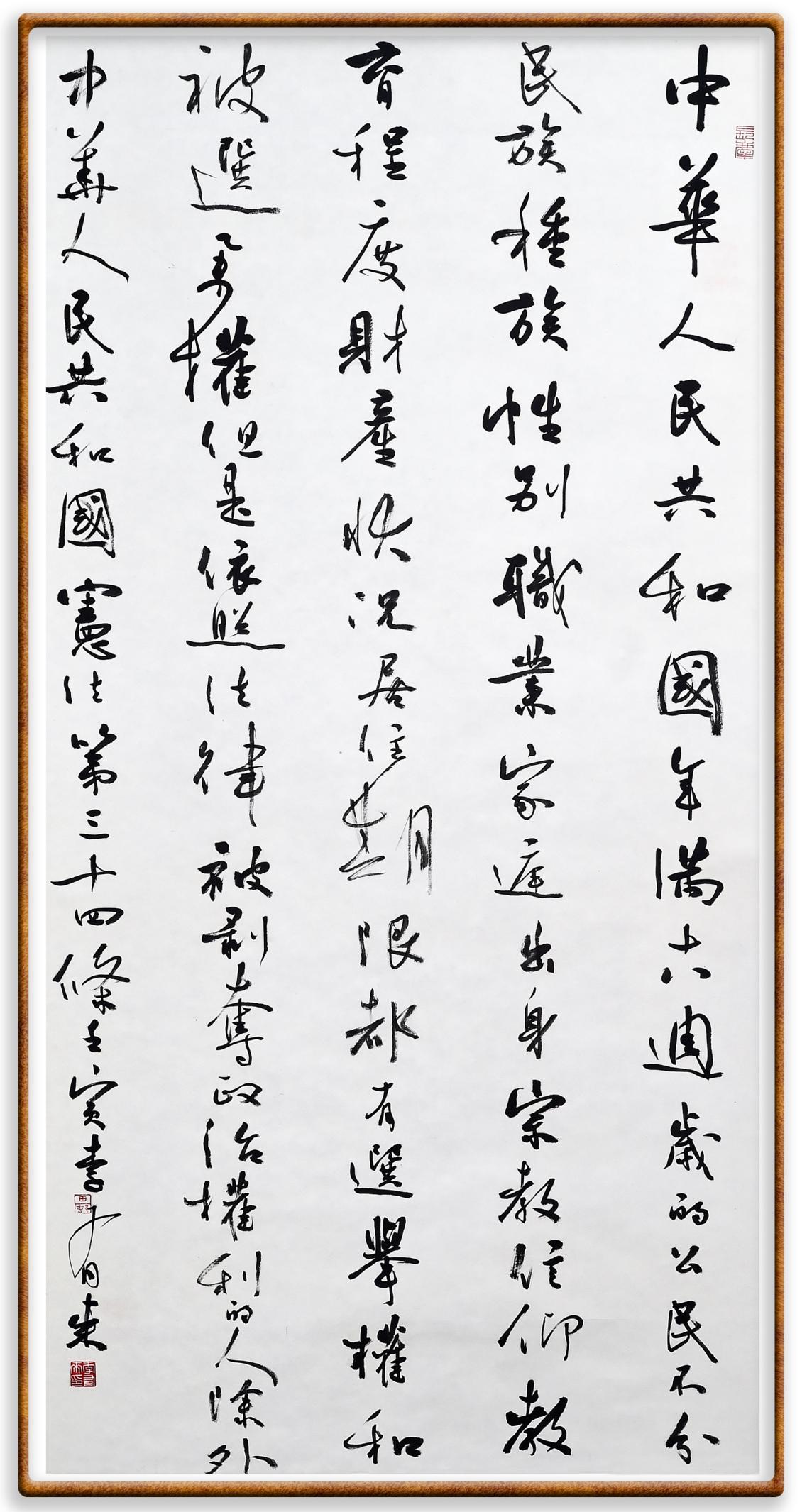 繼《中華人民共和國民法典》《中華人民共和國土地管理法》《中華人民共和國土地管理法實施條例》《中華人民共和國法律援助法》之后,法治日報社聯(lián)合北京市司法局、北京書法家協(xié)會,將筆端對準《中華人民共和國憲法》和《中華人民共和國行政處罰法》。