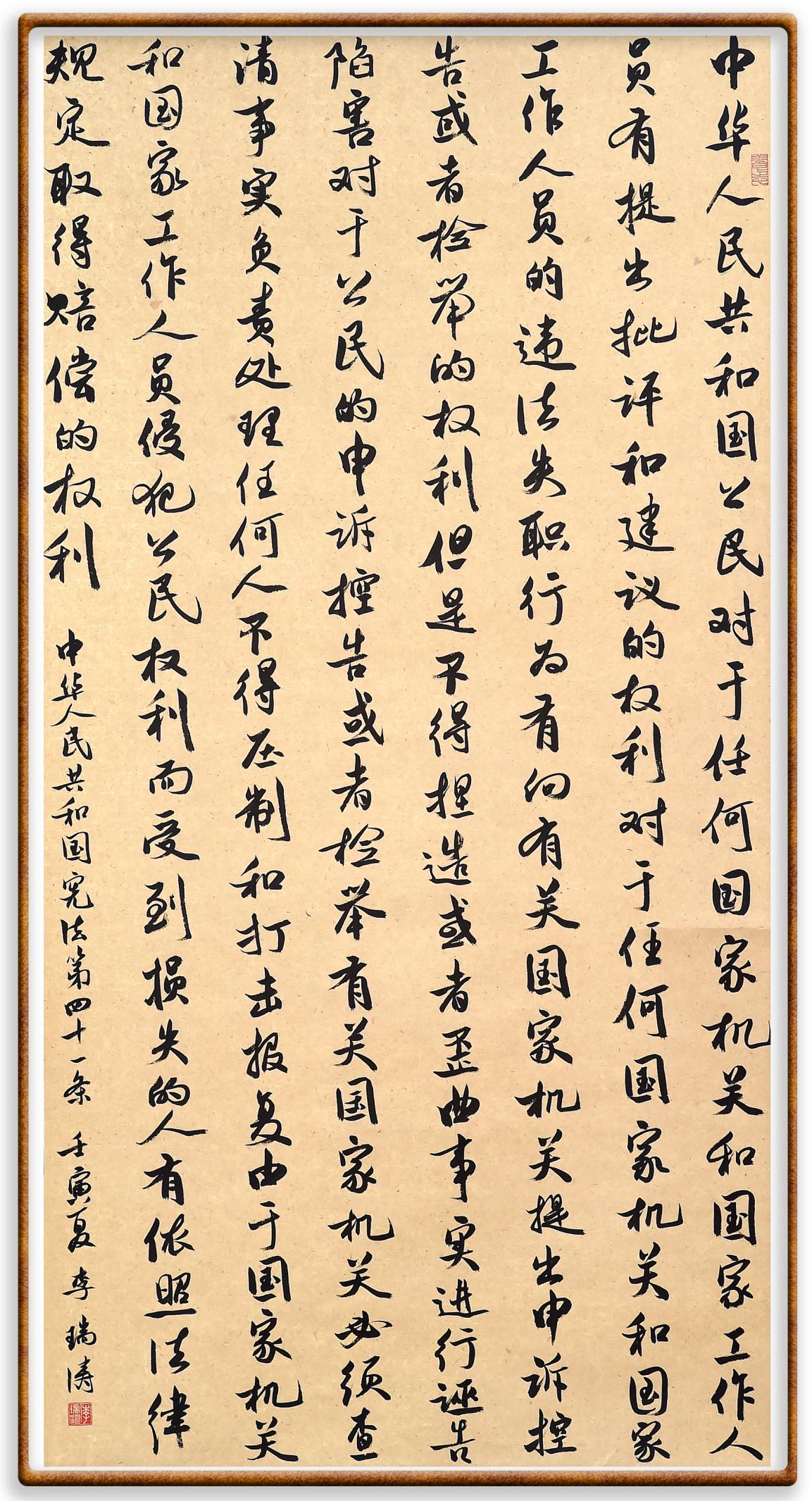 繼《中華人民共和國民法典》《中華人民共和國土地管理法》《中華人民共和國土地管理法實(shí)施條例》《中華人民共和國法律援助法》之后,法治日?qǐng)?bào)社聯(lián)合北京市司法局、北京書法家協(xié)會(huì),將筆端對(duì)準(zhǔn)《中華人民共和國憲法》和《中華人民共和國行政處罰法》。